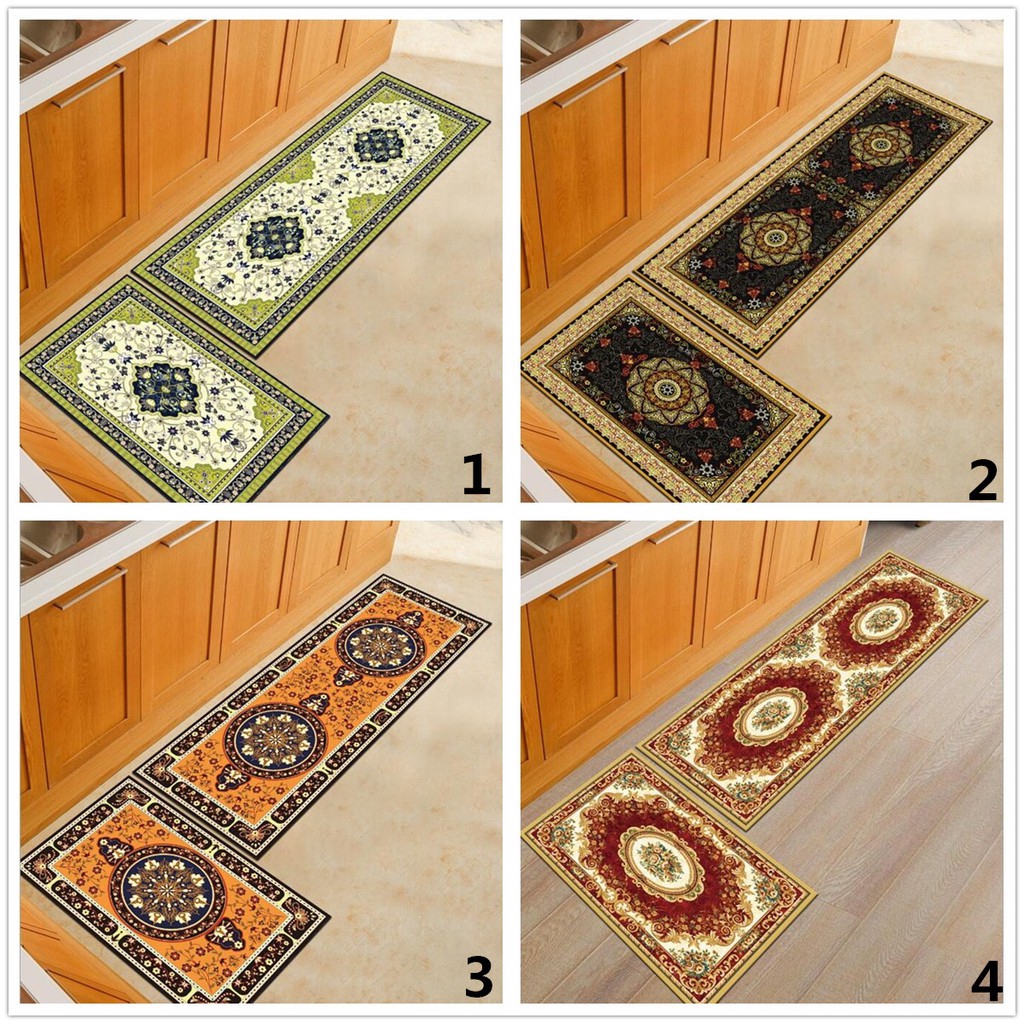 2pcs Set Luxury European Pattern Kitchen Mats Black Area Rugs